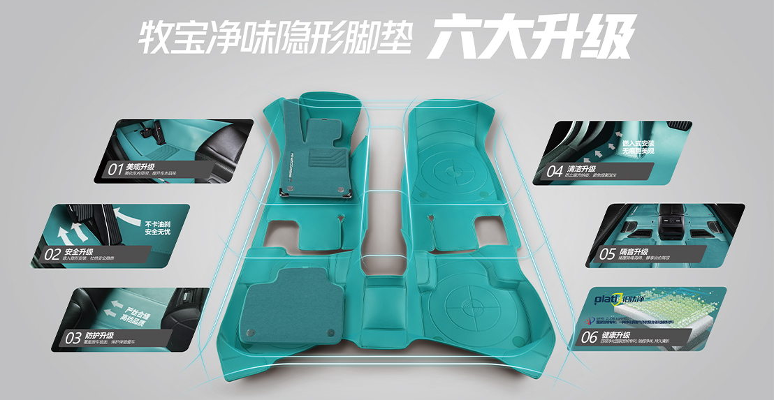 30年專注健康車居用品的牧寶研發(fā)團(tuán)隊(duì),聯(lián)合中建環(huán)科(北京)環(huán)境科學(xué)研究院歐陽林院長(清華大學(xué)首屆材料工程學(xué)院研究生)開發(fā)出具有除醛凈味功能型材料,同時(shí)針對(duì)傳統(tǒng)腳墊裝飾差,不服帖,易走位的痛點(diǎn),將腳墊進(jìn)行六大升級(jí)成為新型凈味隱形腳墊,靚化美化車內(nèi)空間,提升車主愛車品位,防止地毯藏污納垢,避免細(xì)菌異味滋生,****除醛凈味,清爽空氣健康出行,牧寶凈味隱形腳墊,是踐行牧寶關(guān)愛的品位精神,為車主提供健康美好車居生活的重要產(chǎn)品。